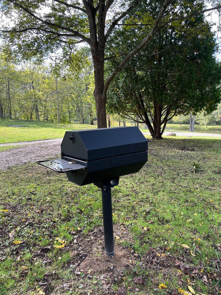 Our back-in "Creekside" RV sites are approximately 87' deep and 40' wide, graveled with water, sewer and 50 amp service. Each site has a picnic table and fire ring.
